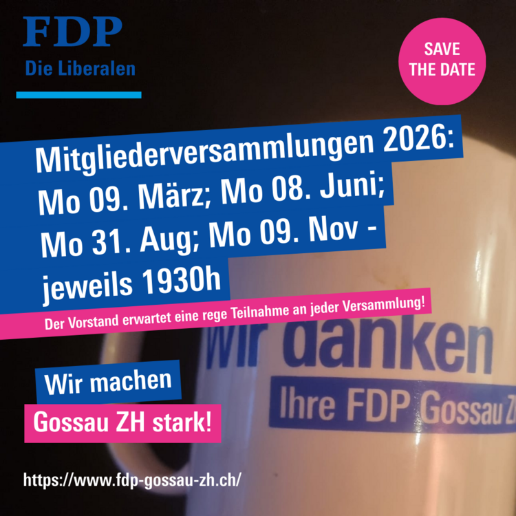 Als ehemaliger Präsident der Offiziersgesellschaft Zürcher Oberland (OGZO) möchte ich alle FDP Mitglieder der Ortspartei Gossau ZH herzlichst zu unseren Anlässen einladen. Unsere Anlässe, ausser der internen Generalversammlun, sind öffentlich zugänglich.